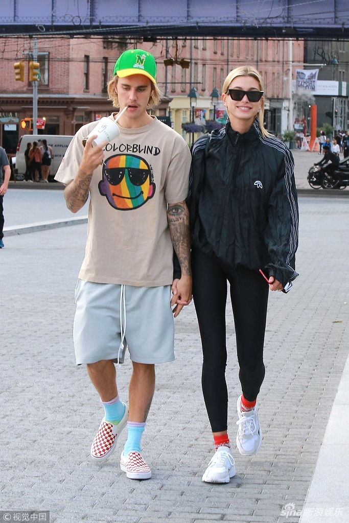 摸头杀!比伯牵手海莉买早餐 出门甜蜜摸女友头