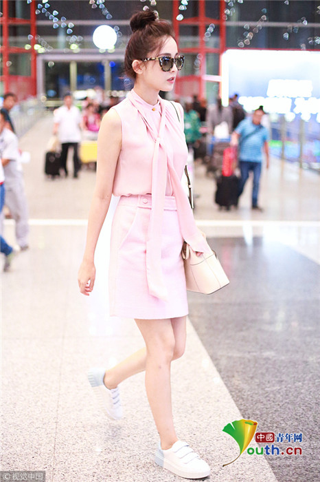 2018年9月5日,北京,古力娜扎现身首都机场。她身穿长裙清纯可爱仙气飘,墨镜遮面大步流星细腿很抢。