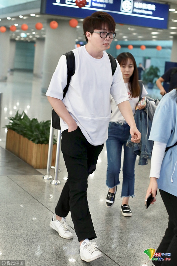 2018年10月4日,北京,毛不易现身机场,他一身简约的黑白配亮相机场,单手插兜耍帅,国庆节独自出行一脸没睡醒。