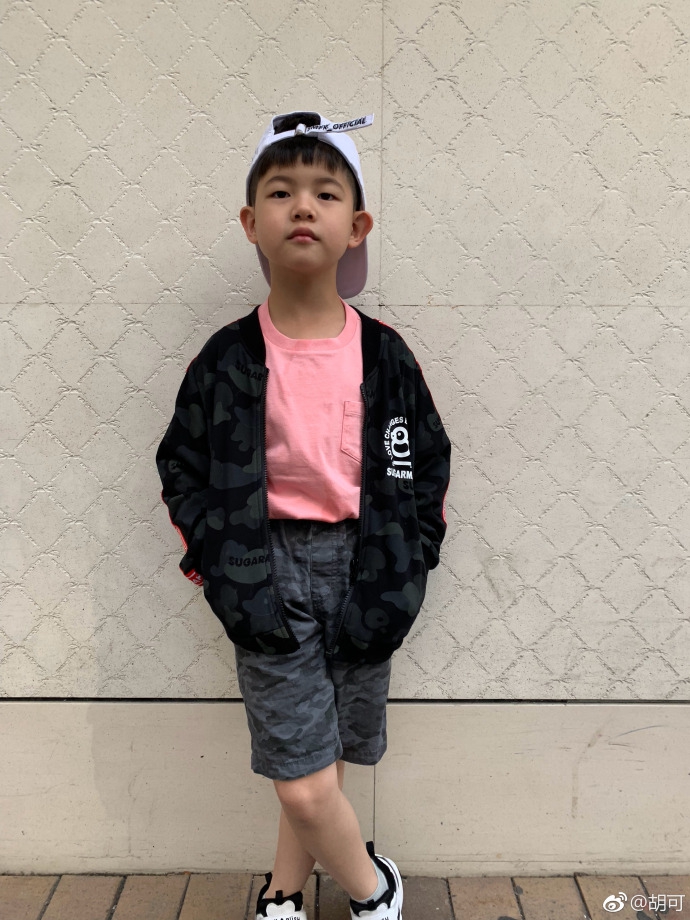 10月10日,胡可在微博晒出一组安吉的美照,并配文:“对于街拍来说,我认为模特很重要,我就想问一下最后一张的那位为何一直抬着高傲的头?”照片中,安吉上身穿黑色外套,内搭粉色T恤,下身穿牛仔短裤,头戴白色鸭舌帽,靠墙站立明星范儿十足。沙溢牵着安吉的手抬起头走路,与安吉的稳重对比,十分搞笑。