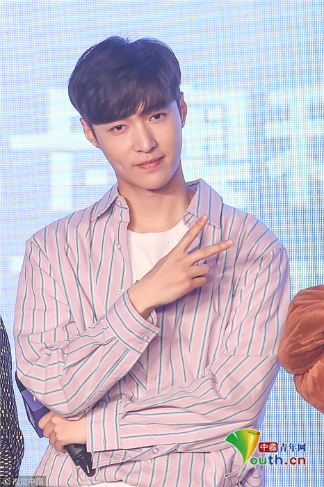 张艺兴出席某代言活动,身穿紫色条纹衬衣搭配白色牛仔裤,活动现场歪头比心帅一脸,重现“小绵羊”人设卖萌显乖巧。