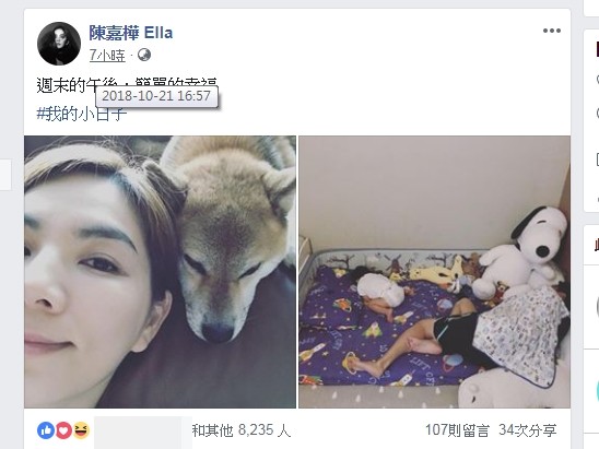 据台湾媒体报道,Ella(陈嘉桦)最近离开新东家,成立个人公司,新事业忙得不可开交,10月21日好不容易有点时间和家人相处,下午时PO出孩子、老公和宠物慵懒的居家样,笑称这是:“周末的午后,简单的幸福,我的小日子”,晚间才知道,发文前7分钟,火车事件发生,强忍悲痛自责写下祈福文,又引来大批网友关注。