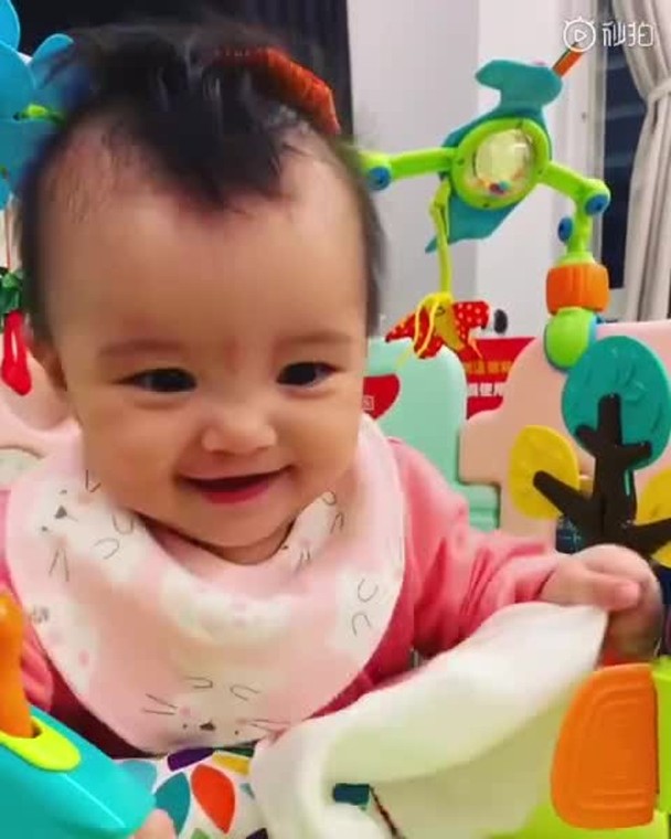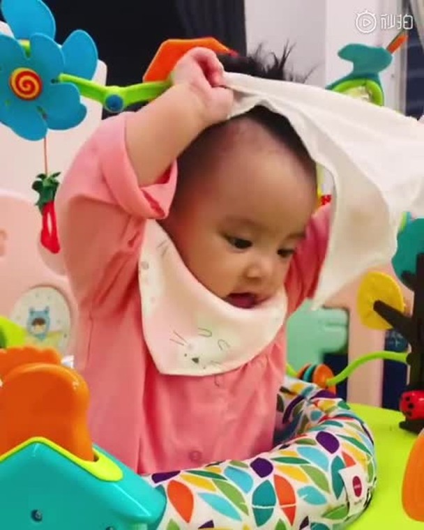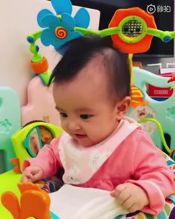 片中6个月大的Kaylor眼睛又大又圆,双手抓着纱巾,坐在婴儿椅上,萌晕一众网友。而妈咪在一边拍片,一边同女儿逗乐:“把纱巾放在头上给妈妈看!好漂亮的!快点放呀!哇…好漂亮呀”。这样的温馨日常使网友十分羡慕。