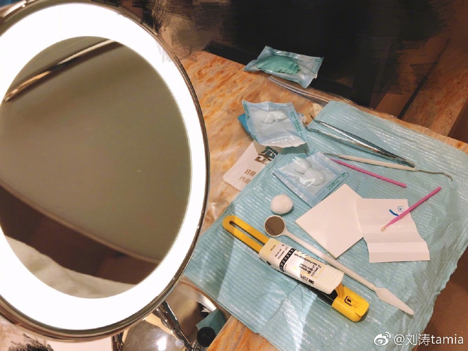 28日,刘涛在微博晒出一组美照,并称:“有时候觉得自己真是一个神奇的存在,一个女演员,半夜收工,终于可以静下来,对着镜子,自己补牙。”照片中,刘涛淡妆出镜,对镜头露出微笑,笑容甜美。而桌上却摆着一系列补牙工具,能干的涛妈简直让人膜拜!