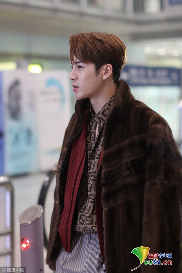王嘉尔披棕色皮草帅气放电 深夜现身机场人气不减