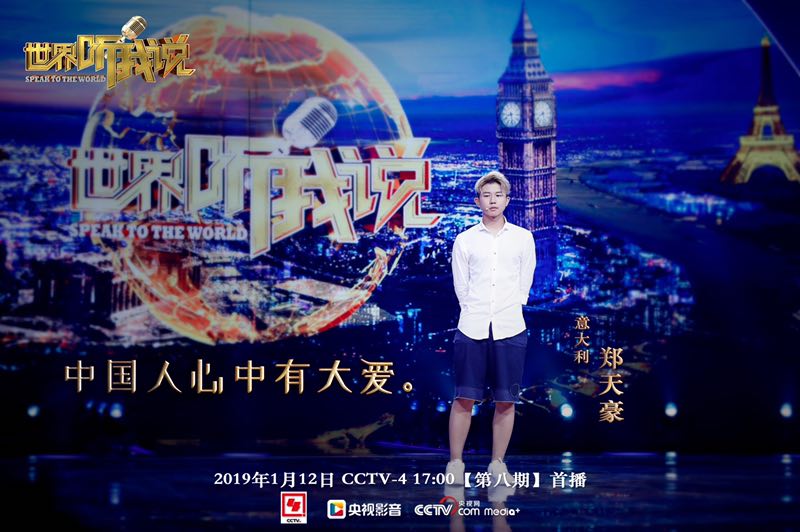 1月12日(周六)晚,由中央广播电视总台央视中文国际频道(CCTV-4)推出的《世界听我说》第三季播出了第八期。节目中,跨文化传播研究学者赵月枝担纲“特邀观察员”,在与华人讲述者们的交流中带来了许多深入浅出的见解;意大利华裔少年郑天豪讲述了自己面对国籍的两难选择,并表达了对中国这个根脉故土的深情留恋;毛里求斯新唐人街基金会主席林海岩讲述了林氏家族关于传承中华精神的故事,爱国举动让观众为之敬佩;新加坡戏剧大师郭宝崑之女郭践红分享了父亲的戏剧人生,并受其影响接过华语戏剧传播大旗;加拿大双语主持人秦屹讲述了海外华人对传统节日的重视,思乡之情让人感同身受。