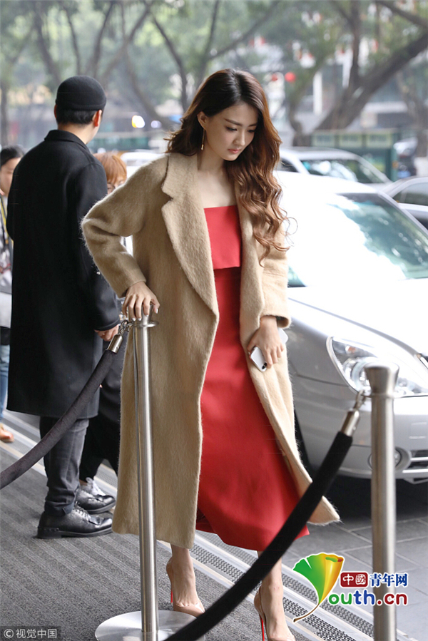 2019年1月26日,广州,徐璐现身某场合。她身披暖色系大衣遮住小红裙,一头波浪卷发复古美艳让人眼前一亮,她笑着对粉丝打招呼并大方合影十分圈粉。