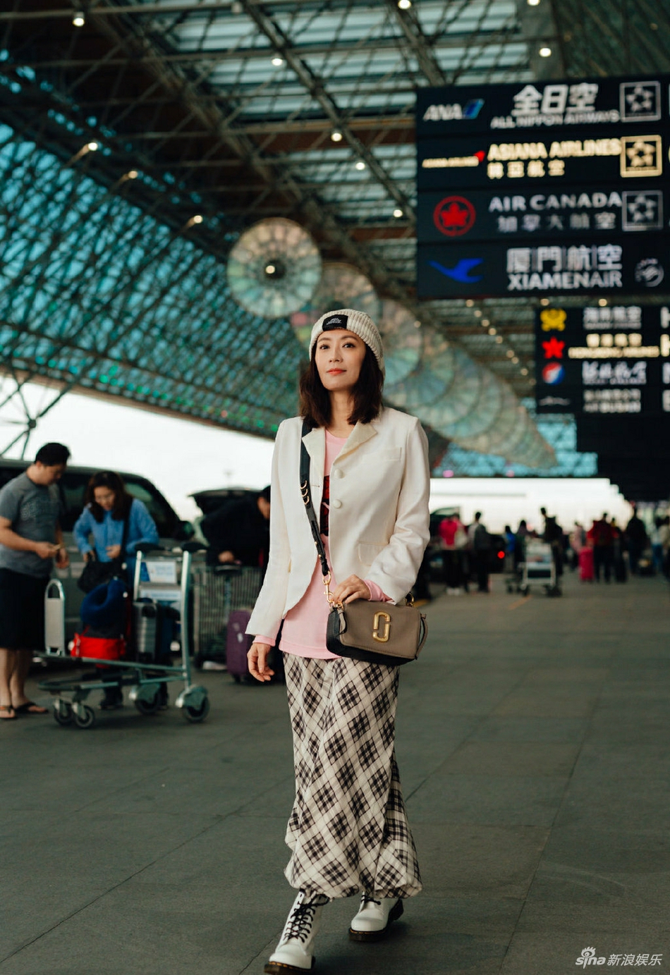 2月11日,贾静雯现身台北桃园机场,启程前往纽约时装周。她着穿浅色外套搭配方格长裙,眼神清澈、笑容明媚,少女感十足。