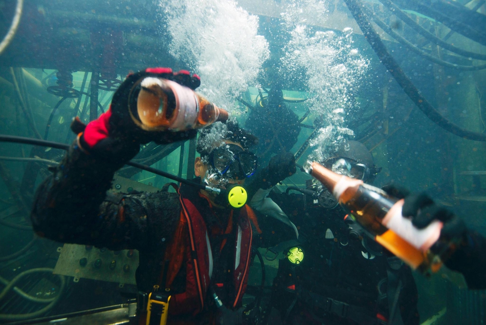 彭于晏在社交平台上分享了他与林超贤导演在海底开香槟庆祝电影杀青的照片。照片中,彭于晏“上天入海”技能槽破表,潜水飞盘样样都行,展硬核型男形象。
