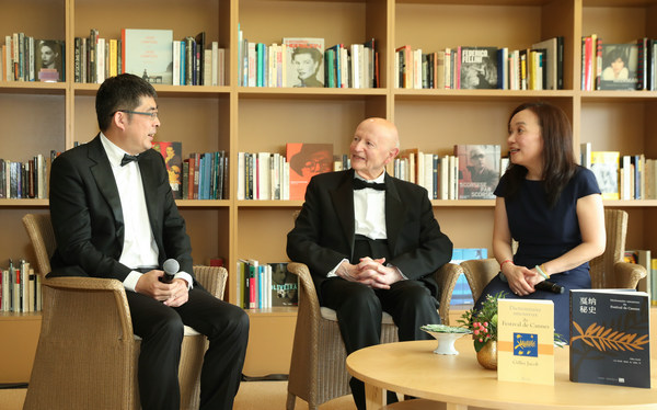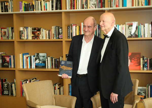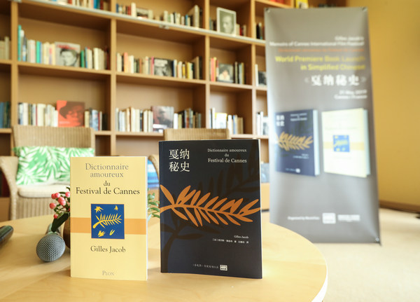 法国时间5月21日,戛纳电影节荣誉主席吉尔斯·雅各布(Gilles Jacob)的戛纳回忆录中文版《戛纳秘史》在戛纳影节宫金棕榈咖啡馆举行新书发布会。戛纳荣誉主席吉尔斯·雅各布,戛纳现任主席皮埃尔?莱斯屈尔(Pierre Lescure)共同出席揭开中文版新书面纱。