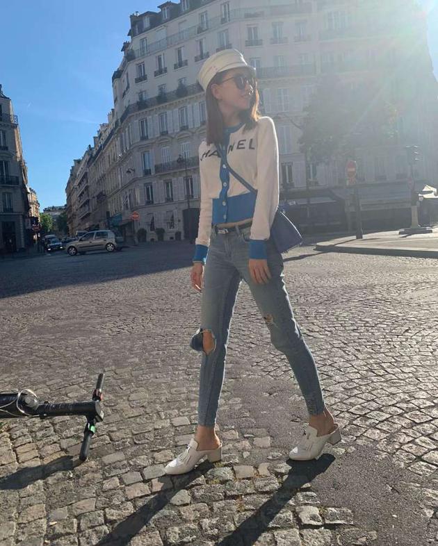 6月3日,昆凌在法国参加完郎朗婚礼之后,换下礼服,晒出街头悠闲漫步的美照。