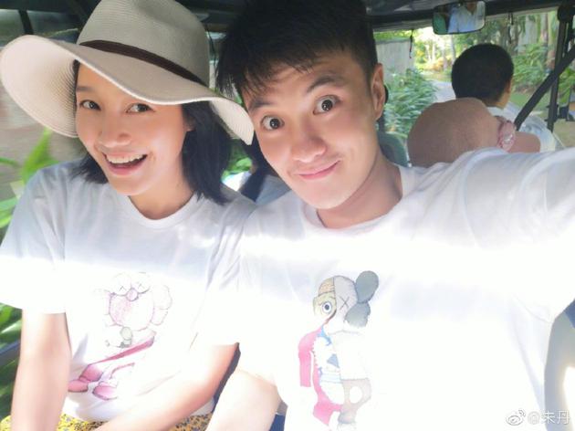 6月3日晚,朱丹晒出和老公周一围出游的合影,并调皮写道:“我是不是该阻止身边这位继续‘装’嫩了。”照片中,朱丹戴着太阳帽,和老公一同坐着观光车,吐舌挤眼俏皮卖萌,幸福全写在脸上;周一围手拿相机自拍,瞪着大大的眼睛耍帅,夫妻俩十分的恩爱,而最抢眼的是两人的情侣装,满屏狗粮。