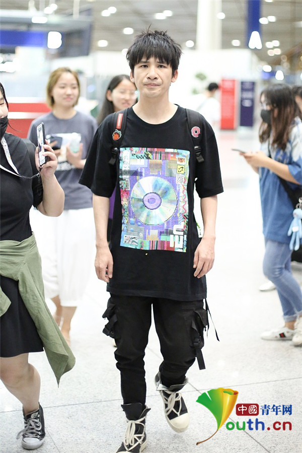 2019年6月4日,北京,大张伟现身机场。他穿着印花T恤打扮时尚,玩嘻哈范儿获迷妹跟拍,无奈八字眉实力抢镜,狂送表情包憨帅可爱。