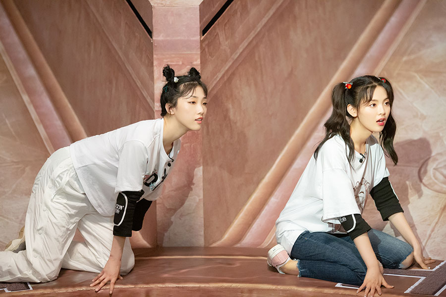 在全新密室之一的天顶密室,随着天花板的不断坍塌,房间高度变得越来越低,历险者的压迫感与之俱增,与此同时,天顶密室中的题型充满奇特与趣味。可一进到新密室,与其他历险者首先观察密室环境不同,“吃货”杨超越眼神直接锁定房间内的水果与零食,就连麦咭都“温馨提示”:你把我的道具都吃光了。