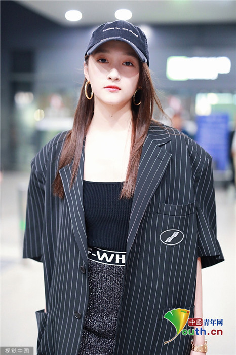 2019年8月13日,上海,关晓彤现身机场。她穿宽松西装搭配闪亮短裙,高调大秀逆天长腿惹人羡,披散长发涂红唇美出天际,一路低调赶路露浅笑心情好。