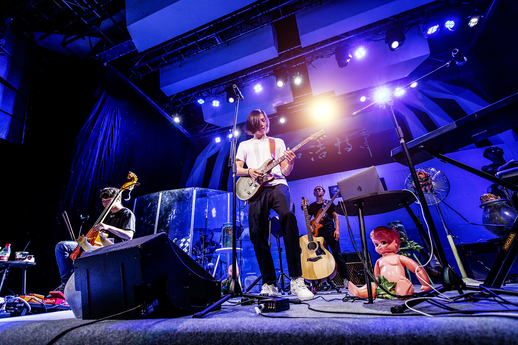 与其他新人首唱会不一样的是,演出伴随着一阵虫鸣开场,灯一亮音乐便直接响起,这场以音乐为主角的演出在开场并没准备什么寒暄,也没有特别的仪式感,马文用一首首歌让现场的人惊叹不已。他身上所体现的艺术家品质,是现在流行音乐界难得可贵的,而这种自然流露就像是在马文血液里流淌着一样。