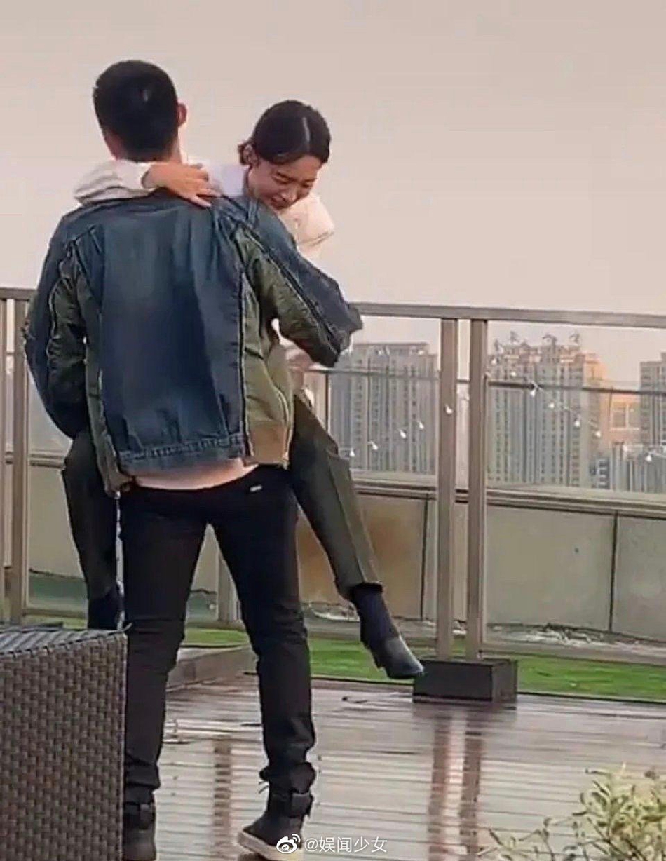 新浪娱乐讯 近日,一组《亲爱的戎装》路透照曝光,照片中黄景瑜穿着牛仔外套和黑裤子,李沁则身着白上衣,俩人上演“树袋熊抱”,姿势暧昧甜齁,黄景瑜还抱着李沁转圈圈,身高差超萌。