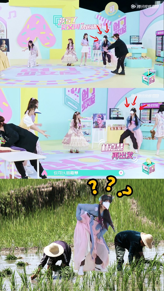 和公司一贯的国风文化相通,林嘉慧也是个汉服少女,中她穿汉服亮相十分吸睛。但令人没想到的是,一边是温柔灵动的汉服少女,一边是玩起游戏来撩起裙摆露出运动裤的“怪力少女”,甚至被娱乐博主P成了老汉插秧的图片,成为创造营靠喜感出圈第一人。