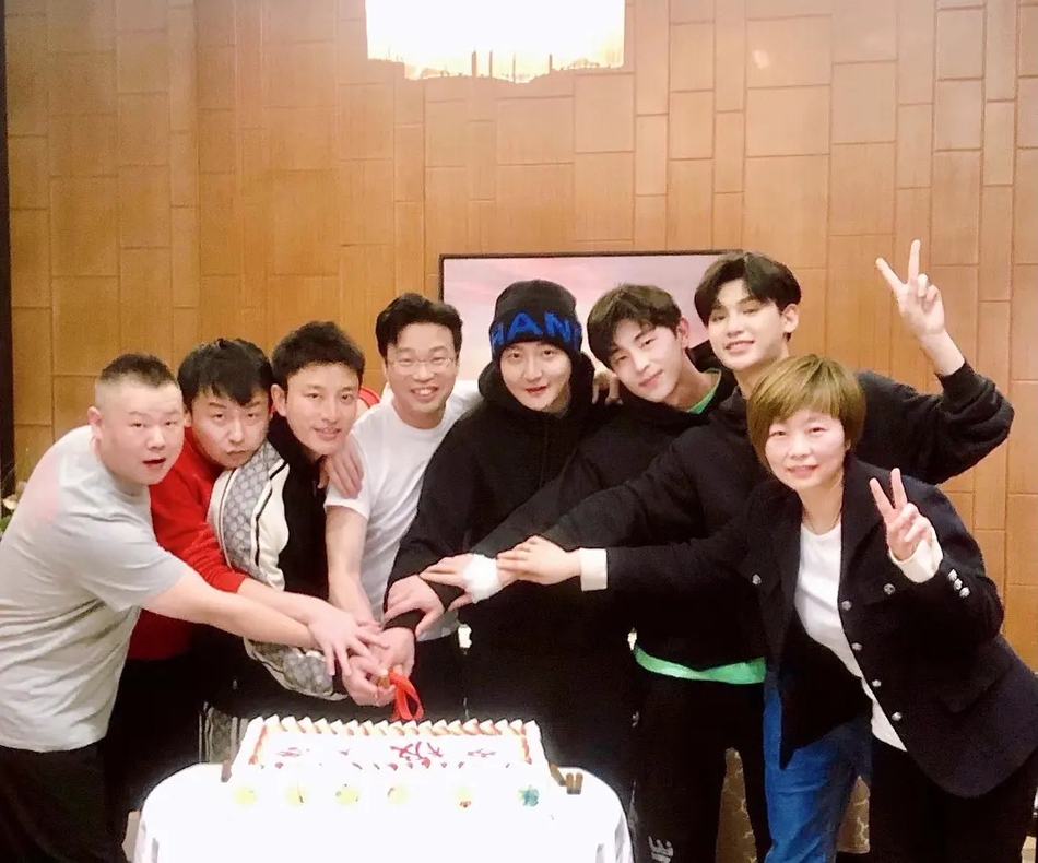 新浪娱乐讯 3月7日,《极限挑战》第7季正式开录,王迅、雷佳音、岳云鹏、贾乃亮、邓伦、郭京飞、黄明昊一同切蛋糕庆祝,气氛欢乐。