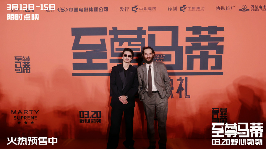 此次是导演乔什·萨弗迪和主演“甜茶”提莫西·查拉梅首次来到中国,“甜茶”和导演堪称开启一段比马蒂还疯狂接地气的沉浸式本地人体验。“甜茶”首站成都与当地嬢嬢打球、与大爷学习品茶,上手霉豆腐、吃正宗火锅、自己走上街头赠送电影《至尊马蒂》海报“活人感”满满。来到北京逛胡同、寻豆汁,感受十足烟火气。导演乔什·萨弗迪更是爱上小马扎,一口气连买四个,“抓马”上头。影片预售已开启,将于3月13日18:00-22:00;3月14日-3月15日14:00-16:00,18:00-20:00 全国部分影城限时点映,3月20日影院上映。