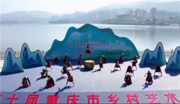 夏冰导演舞蹈《鼓》,以彭水市级非遗《甩手揖》基本元素进行舞蹈创作,国家级非遗《鞍子苗歌》中《对门灯笼团纠纠》为基调进行音乐创作。在千年迁徒苦难战斗中受尽磨难的苗族人,其他东西可弃,但鼓皮不能丢,在无数次战斗中,战鼓是激发族人激情和顽强的斗志之鼓,是苗族人的鼓魂。苗鼓有两大特色:一是“边”,二是“跳”。即“敲边鼓”与“跳鼓”,敲边鼓用于稳定节奏,起到指挥鼓点的作用;跳鼓,一边打鼓一边跳舞。舞蹈《鼓》,击鼓而生,击鼓而战,击鼓而奋,震撼灵魂;如雷如电,如火如铁,情人绰约,勇士鼓万。观赏舞蹈,仿佛被一种带有原始血性的电波灌注,于是,驱壳开始战栗、舒展,进而变成一匹脱缰的野马,倚仗苍茫大地,信仰旷野的风,释放并凝练原始时空裹挟而来的力量。有物竞天择的残忍,也有战士之为战士的尊贵和高傲,也是这份尊贵,让一个族类才生生不息,并化作骨子里源远流长的民族魂。
