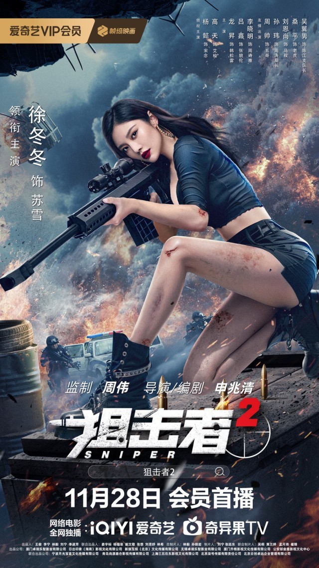 动作犯罪电影《狙击者2》今日正式公布档期并发布定档预告及海报,官宣将于11月28日起在爱奇艺全网独播。影片由周伟监制,申兆清导演、编剧,徐冬冬、杨懿、高天领衔主演,龙昇、吕鑫等主演,讲述了酷辣女狙击手苏雪(徐冬冬饰)与哥哥艾梭(高天饰)受雇秘密掩护一场非法地下交易时,遭遇同为女狙击手的警花宋念(杨懿饰)及特警队正面狙击,双方交火中,特警队长韩松雷(龙昇饰)不幸负伤。兄妹二人这才发觉自己早已陷入了一个“黑吃黑”的巨大阴谋,而策划这一切的大Boss——黑心商人张貌伦(吕鑫饰)也已被公安机关盯上。苏雪决意向幕后黑手报仇,宋念也立誓要将罪犯缉拿归案,一场巅峰的黑白狙击对决一触即发!