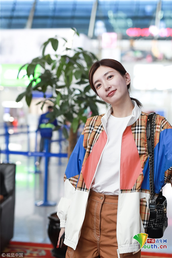 8月5日,上海,江疏影现身机场,她身穿拼色格子夹克配短裤,秀2米长腿,自推行李箱。她镜头前歪头、撩发摆pose。江疏影还娇羞捂脸,秀美甲的同时,还能显脸瘦,真是“手动美颜”呀。