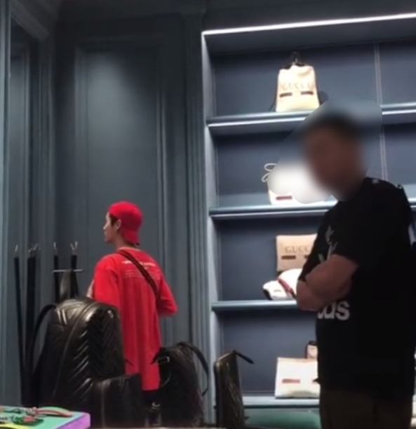 8月8日,鹿晗在日本某名牌店被网友偶遇,身边跟着女朋友关晓彤。鹿晗红色帽子配上红色T恤,看到镜子过去整理仪容。关晓彤则是蓝色外套灰色帽子,照片中只看到背影。