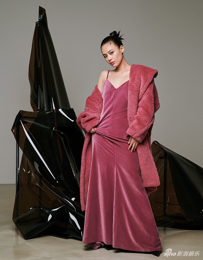 马思纯化身封面女郎 穿粉色大衣半露香肩
