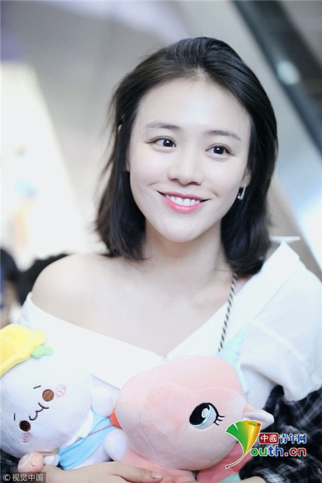 2018年9月5日,上海,马思纯现身机场。马思纯穿一件拼接格子衬衫,露香肩瘦成小尖脸。她一一为粉丝签名超亲民,对镜头展“海绵宝宝式微笑”。