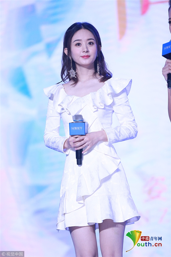 赵丽颖荷叶边连衣裙亮相 甜美迷人