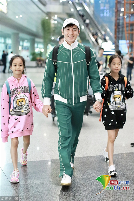 28日,张伦硕带考拉姐妹俩现身机场。张伦硕穿一身“原谅色”运动装清爽有活力,俩女儿穿“姐妹装”获俩女儿左右护驾的他露出慈父暖笑。