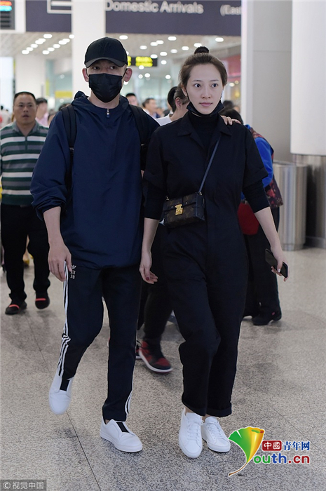 2018年10月13日,深圳,聂远和妻子秦子越现身机场。聂远和老婆穿情侣装手牵手秀恩爱,秦子越梳丸子头大方素颜皮肤水嫩。