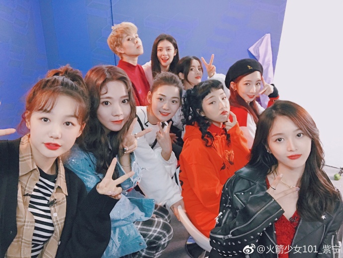 紫宁晒火箭少女集体合影 对镜卖萌俏皮耍酷个性十足