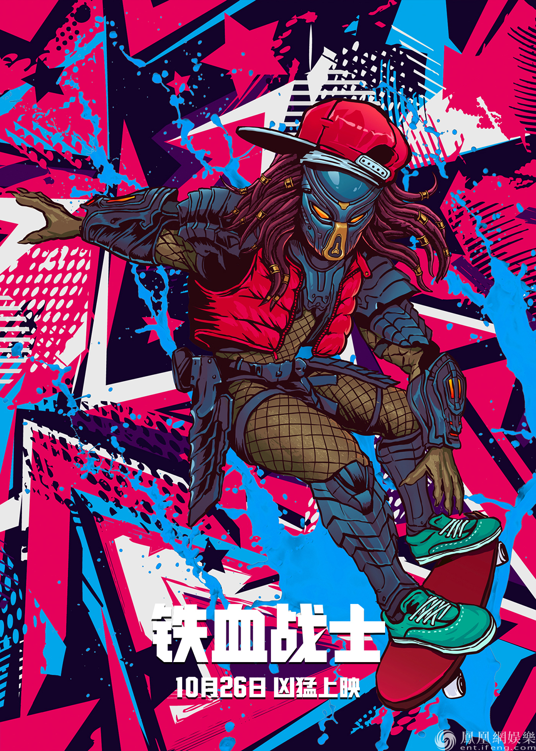 由二十世纪福斯出品、《钢铁侠3》导演沙恩·布莱克执导的好莱坞科幻动作冒险大片《铁血战士》即将在10月26日内院线上映,将终结近两个月的“好莱坞片荒”,并打响“好莱坞保护季”的第一炮!影片之前在北美上映,顺利获得首日和首周末的票房冠军,势头正劲。近日《铁血战士》曝光了一组潮流文化海报,海报中宇宙最强猎手铁血战士滑板、打游戏、篮球、街舞无所不能,玩转娱乐跻身潮人界。