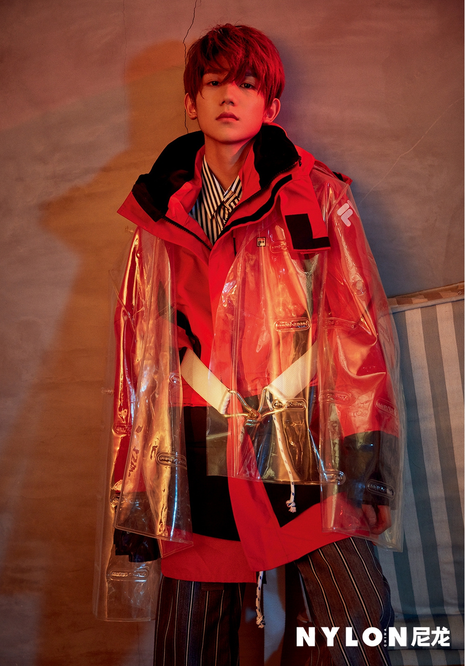 王源“雨衣”造型登封面 暗红色调显露少年小叛逆