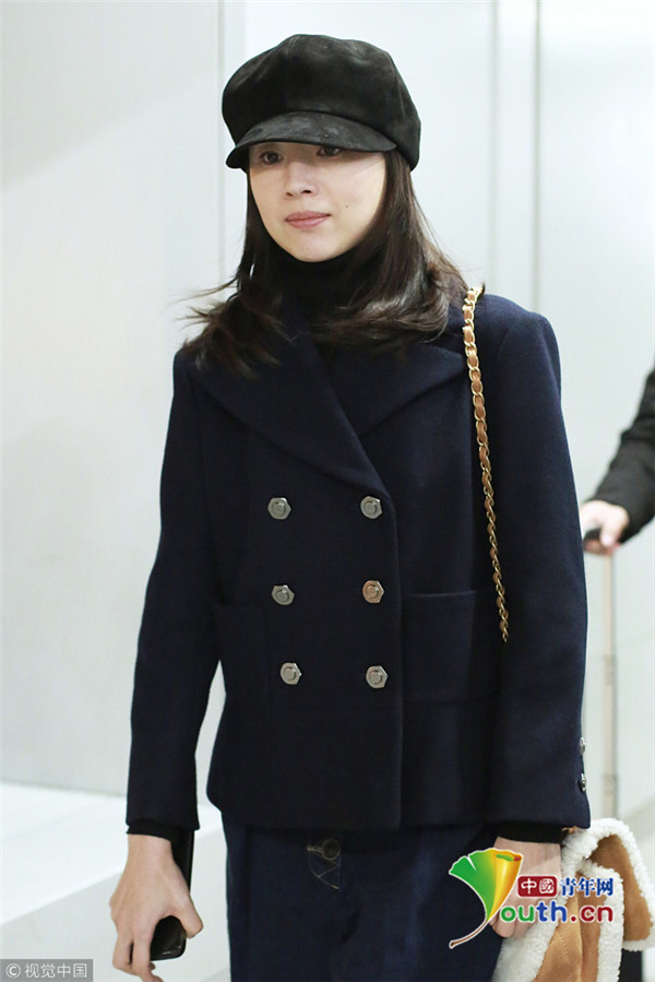 董洁素颜亮相颜值回春 机场遭围拍路人比V抢镜