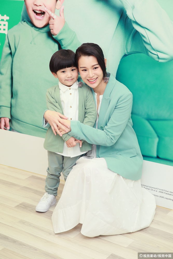2019年1月8日,香港,胡杏儿出席喷鼻式流感疫苗代言人发布会。她身穿薄荷绿色外套,皮肤白皙令人羡慕,和小演员亲密互动尽显母爱光环。