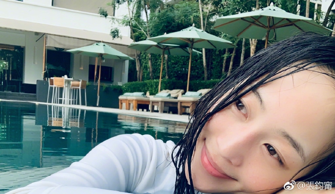 张钧甯游泳不忘自拍 素面朝天元气满满超美丽