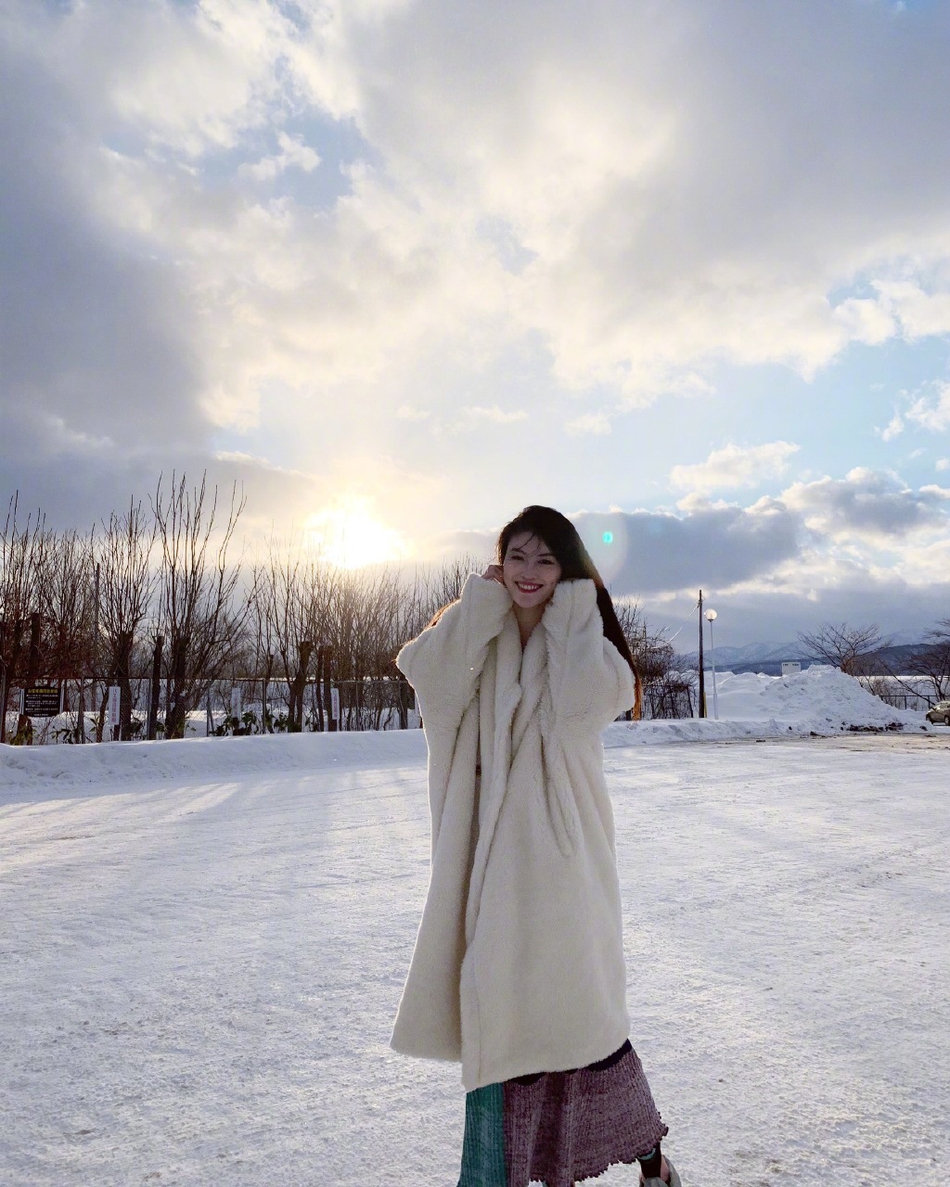 15日,何穗在微博晒出一组美照,并配文:“以前来只顾着滑雪,腿伤让我有时间好好看看北海道的美”。照片中何穗身穿白色大衣对镜甜笑,俏皮可爱白到发光,简直是仙女本人。