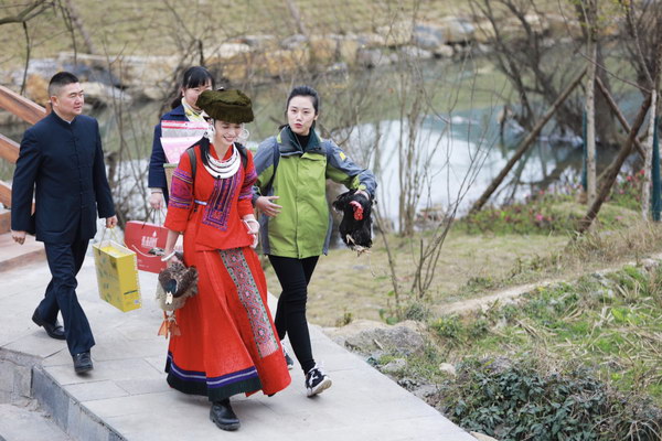 在购买了满满当当的年货后,方市长和冯副市长力邀姚晨前去屯脚镇鲤鱼村赴一场“苗寨新春薏米宴”。