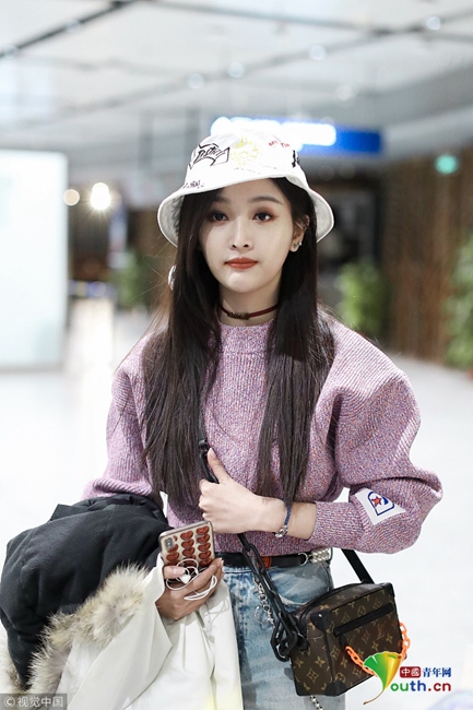 2019年2月15日,北京,吴宣仪现身机场。她身穿紫色毛衣搭配渔夫帽穿搭超赞,美颜更是精致能打,她在机场拿起一本时尚杂志,看来仍不懈怠时尚修养呀。