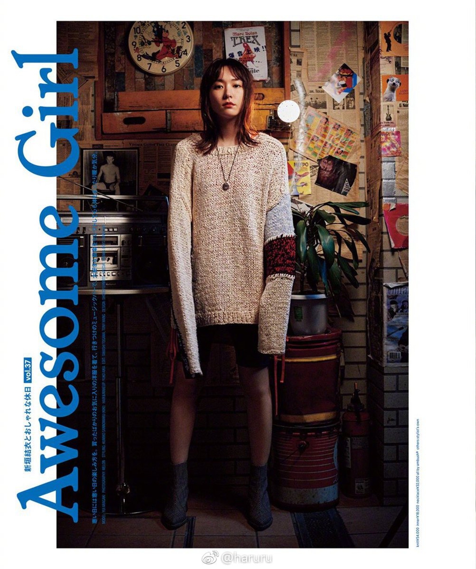 新垣结衣拍摄日杂《NYLON JAPAN》2019年3月号的内页,红唇大展时尚复古风。
