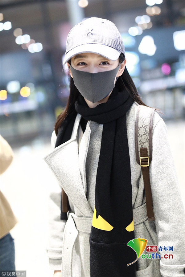 2019年2月24日,上海,何泓姗现身机场。她戴着棒球帽,即使口罩遮面难掩笑意,候机时乖巧比心散发小女人味。