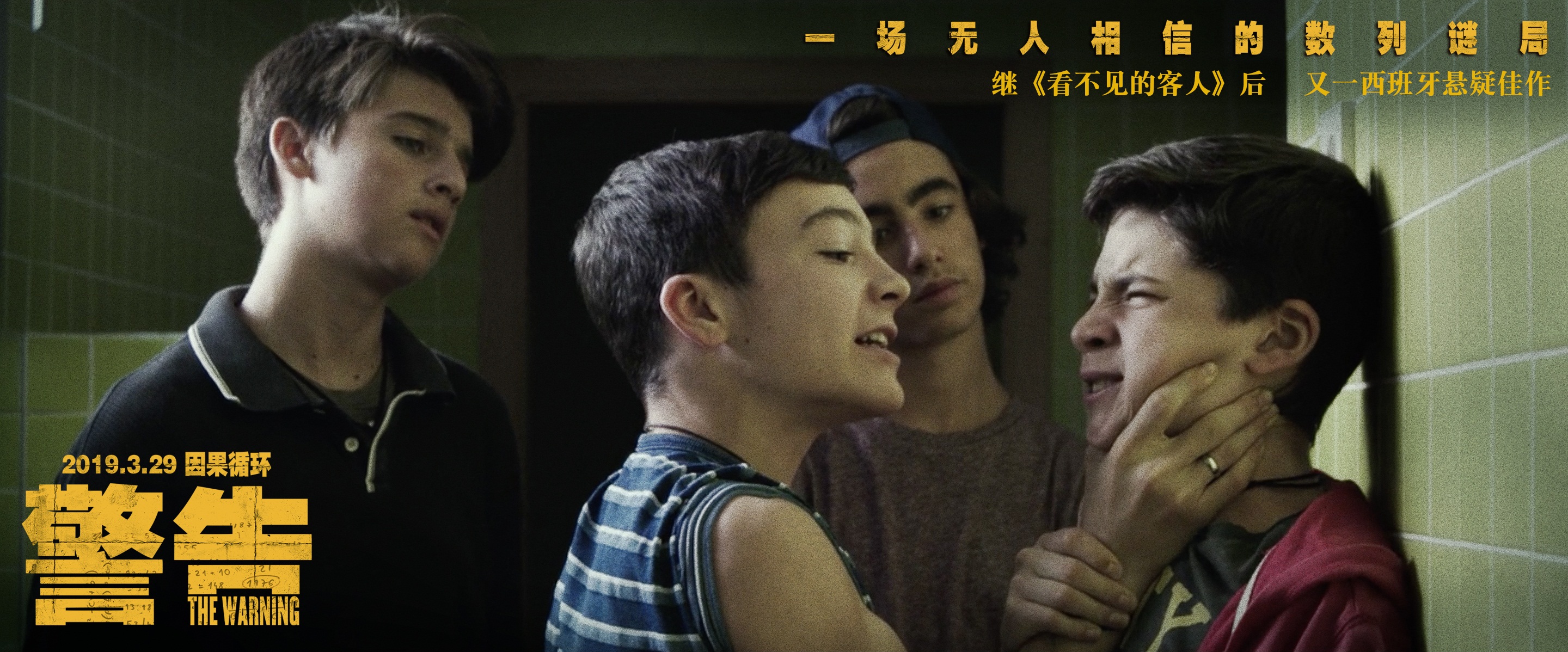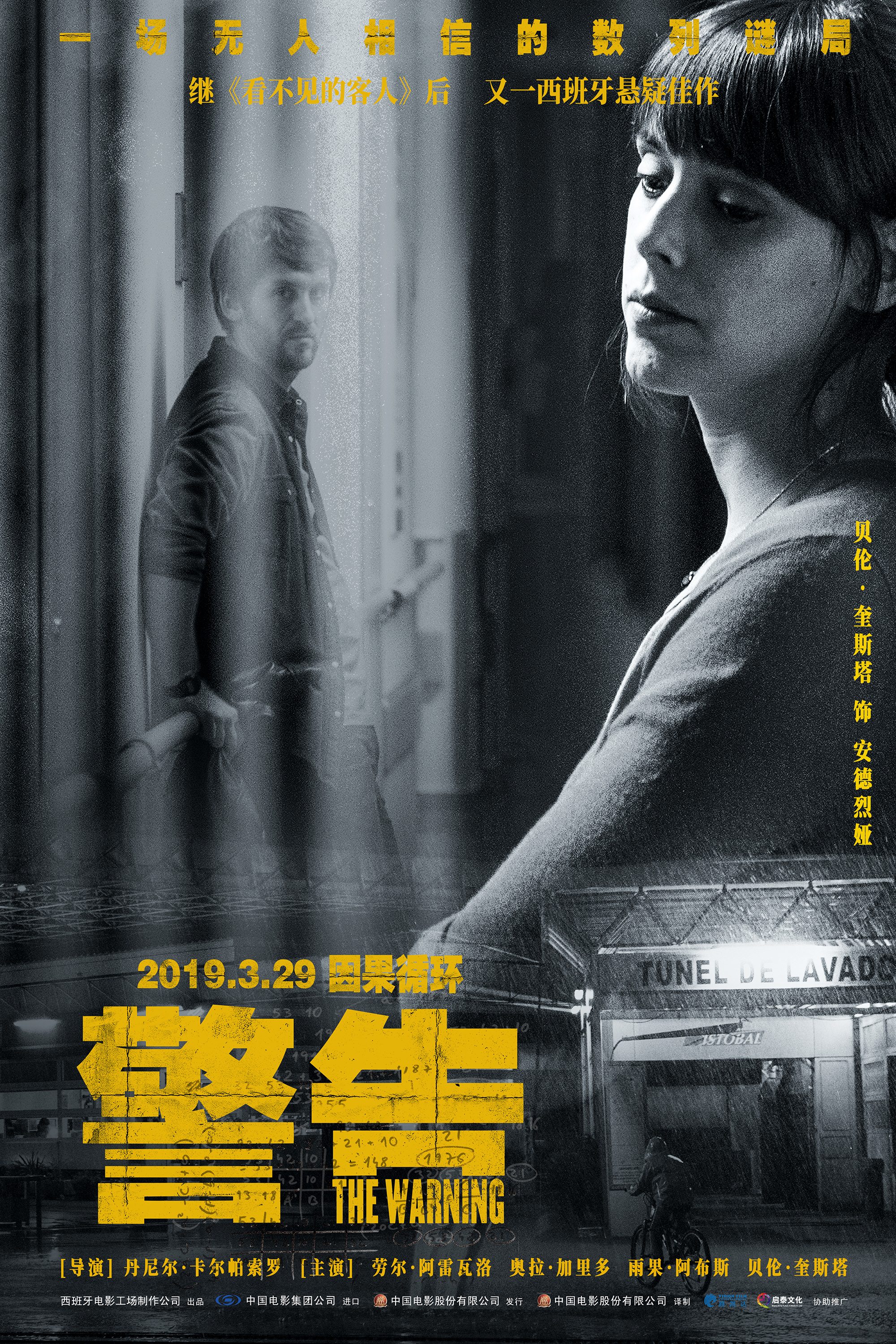 继《看不见的客人》后又一部引进内地的西班牙悬疑惊悚电影《警告》于今日发布了人物海报。该片由丹尼尔·卡尓帕索罗执导,讲述了天才奥数学家约恩运用数学推理演算破解“数字诅咒”的故事。今日发布的人物海报展现了影片双时空故事中的几组人物画像,细节之处暗藏玄机。影片定于3月29日全国公映。