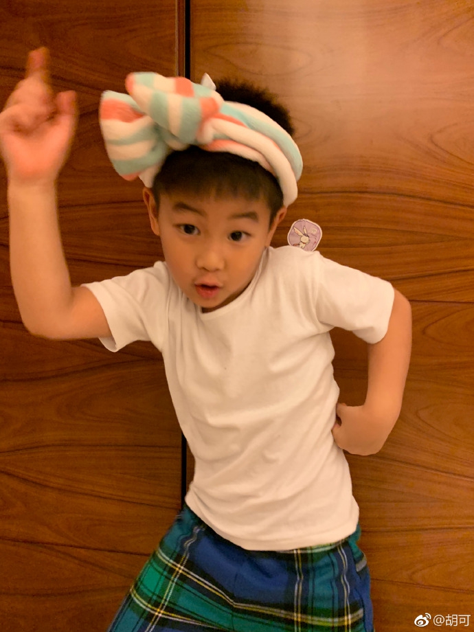 胡可晒儿子萌照道晚安 小鱼儿手舞足蹈表情很搞怪