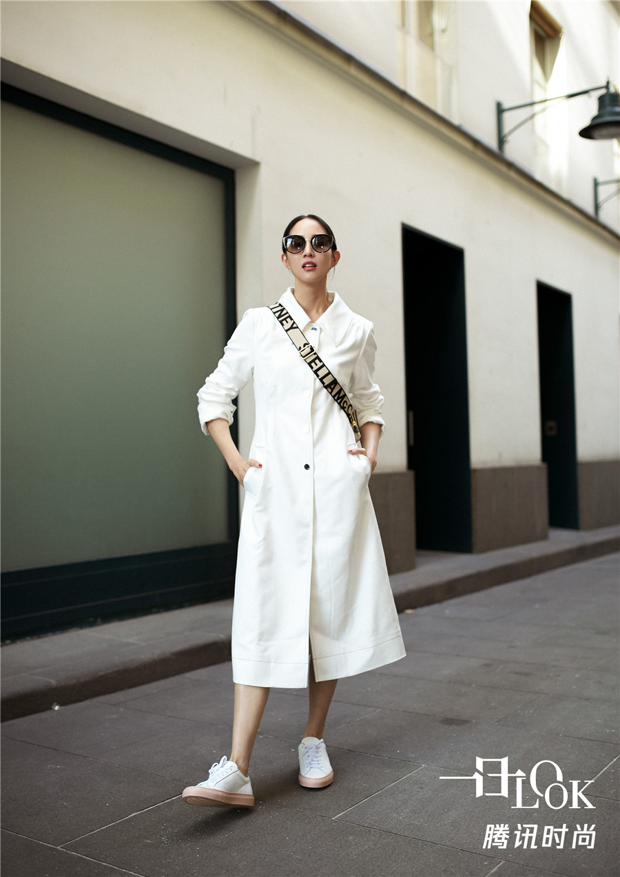 张钧甯全白look温柔大气 玩转春季街头时髦穿搭