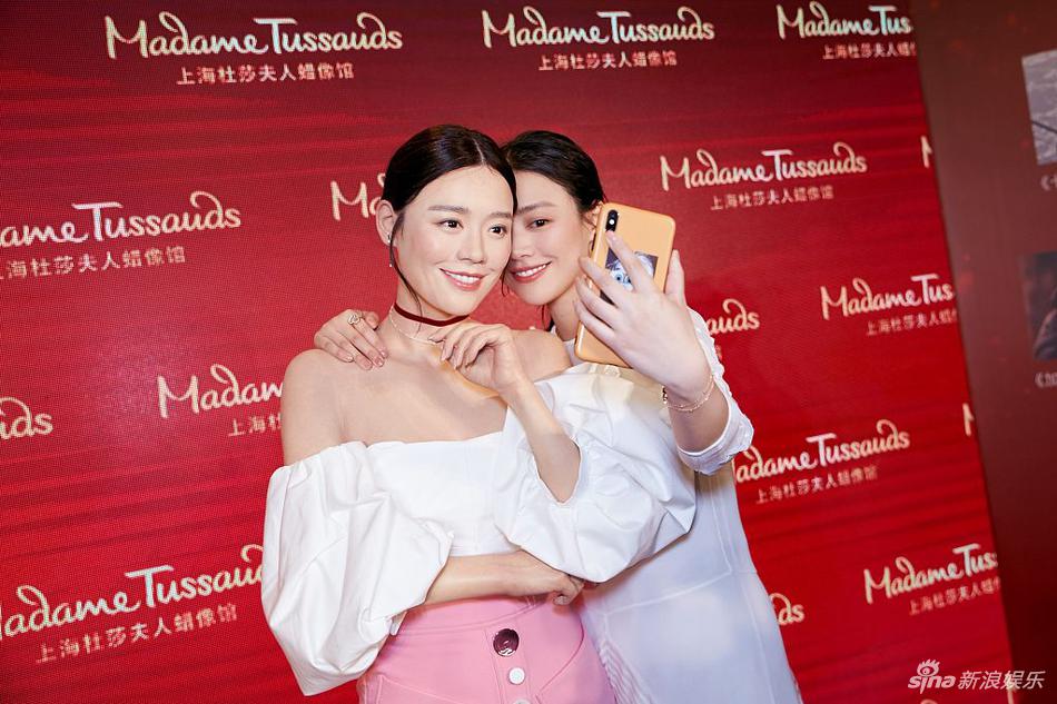 2019年3月27日,上海,马思纯在杜莎夫人蜡像馆参加个人蜡像揭幕仪式。她身穿白色纱裙,搭肩蜡像“马二纯”露标准甜笑姐俩好,反复观看揣摩似“好奇宝宝”。(视觉中国/图)