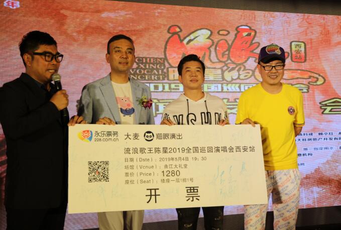陈星全国巡回演唱会西安站将在5月4日于西安曲江国际会议中心举办,由著名导演,词作家张峻品携手导演团队全程打造,著名武术家马胜利担任总顾问,杨斌,彭亭彬,黄宁,雷鸣,张峻品,顾小红,卢思伊,董保利,熊绍山担任总策划,陈星将为全国广大的歌迷朋友歌唱自己原创经典曲目,《伤心泪》《望故乡》、《新打工谣》、《流浪歌》、《月牙》、《情锁》、《离家的孩子》、《赢天下》等16首原唱作品,于广大歌迷分享他的歌曲和流浪故事。凤香经典西凤酒之夜“流浪歌王”陈星全国巡回演唱会西安站由陕西丝路文化交流基金会,四季华庭酒店有限公司、陕西马氏集团、张峻品艺术工作室,陕西大旺房地产开发有限公司、乾县唐汉隆国际商务酒店主办、由陕西凤香经典酒业管理有限公司,陕西闻是茗品牌管理有限公司全程支持,西安合一文化发展有限公司承办、由陕西大汉天下影视公司,燕京碑酒,药友饮用水,西安尚菲演出、185文化创意机构、陕西华蕊时代影视文化传媒有限公司、百网联盟协办,西安海臣文化艺术传播有限公司。