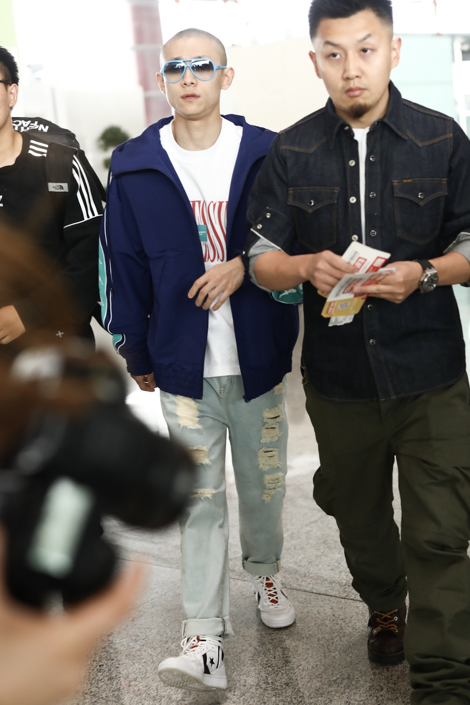 2019年4月20日,北京,张一山现身机场,他穿破洞裤潮装亮相,搭配oversized外套痞帅十足,不仅“卤蛋”造型成功引起注意,而且墨镜加持装点门面,保镖护驾派头十足,既能扮酷耍帅,又会吐舌卖萌。